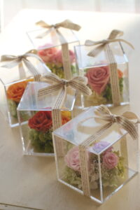 実は、病院や施設のお見舞い花としてお持ちになられるお客様も多いです。サイズ感ちょうどいいですよね。病院、施設には生花の持ち込みができないですが、患者様のプライベート空間にお花があるだけで、きっと心もほっこりするのではないでしょうか。