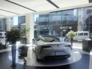 新車の展示会に合わせて、アーティフィシャルフラワーの花装飾しました。