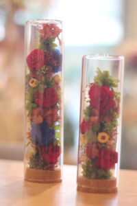 ガラスの中にプリザーブドフラワーを閉じ込めたデザインは、そのまま飾ってとっても長持ち。