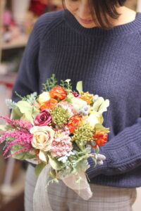 エムズパレット代表の渡邉です。花の持つ力で、心安らぐ空間をお届けしたいと考え、日々花と向き合っています。エムズパレットは、プリザーブドフラワー、アーティフィシャルフラワー、生花、ドライフラワーと様々な用途に合わせて対応できるフラワーアレンジメントスタジオです。