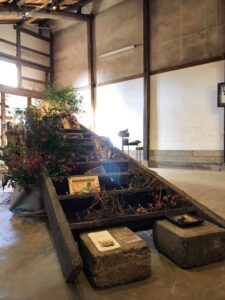 文化財である酒蔵での和花のディスプレイ。野花や枝物のアレンジは和風になり過ぎずデザインします。生花で制作しました。
