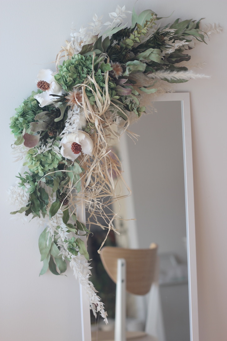 内装に合わせてお作りしています。プリザーブドフラワーは長い間楽しめるお花です。だからこそ、お店のイメージに合うアレンジをお届けしたいですね。