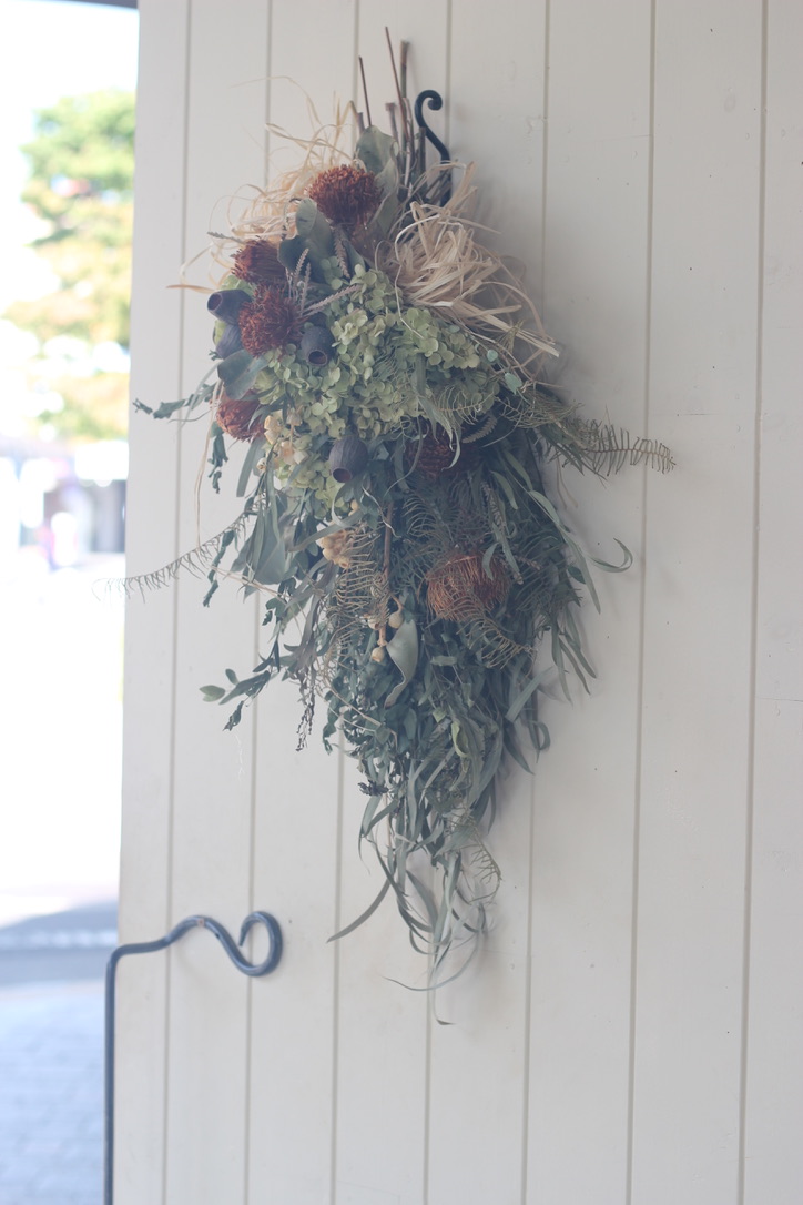 カフェの店内へドライフラワーのスワッグアレンジをお届けしました。
